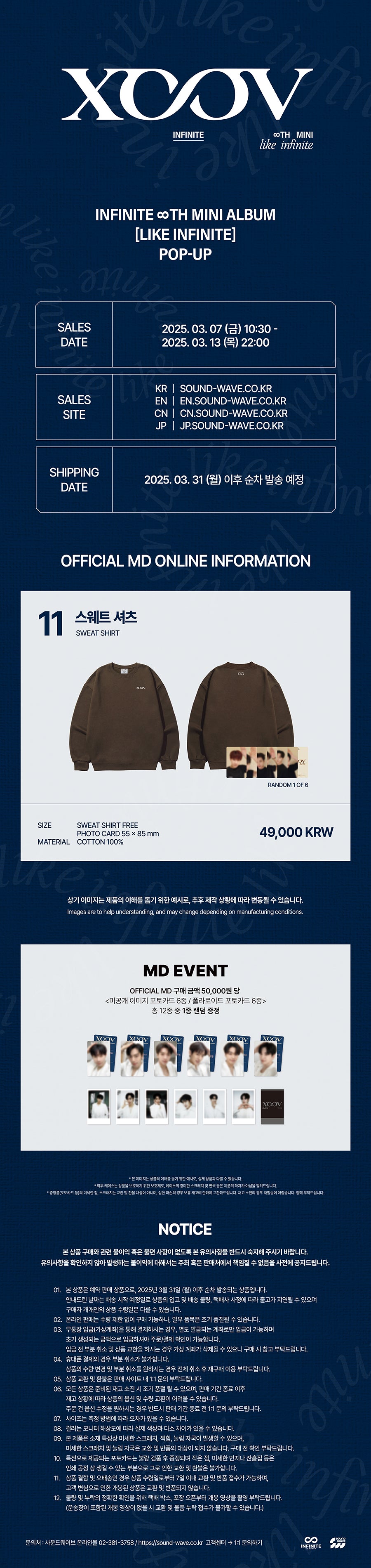 INFINITE - [LIKE INFINITE] POP-UP STORE MD SWEAT SHIRT