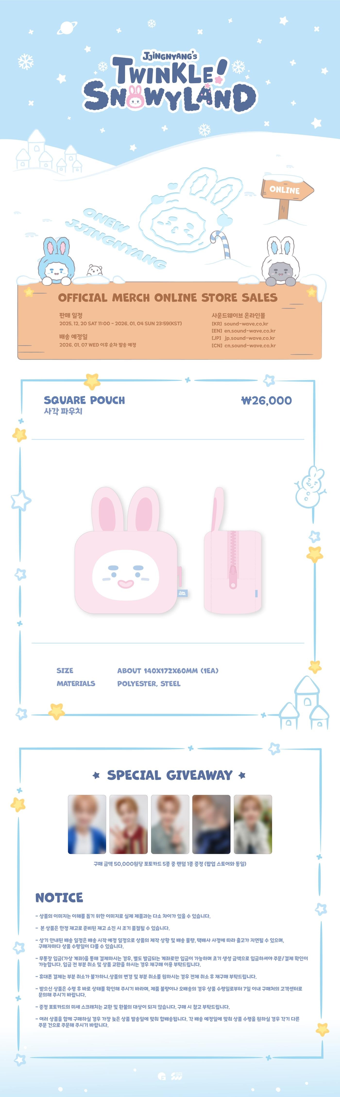 ONEW - [JJINGNYANG'S TWINKLE! SNOWYLAND] POP-UP MD SQUARE POUCH