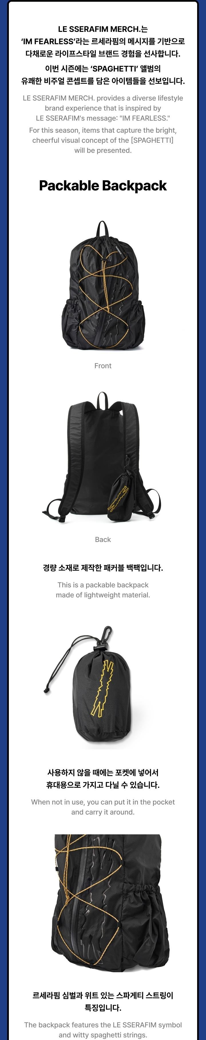 (PRE-ORDER) LE SSERAFIM - [SPAGHETTI] OFFICIAL MD Packable Backpack