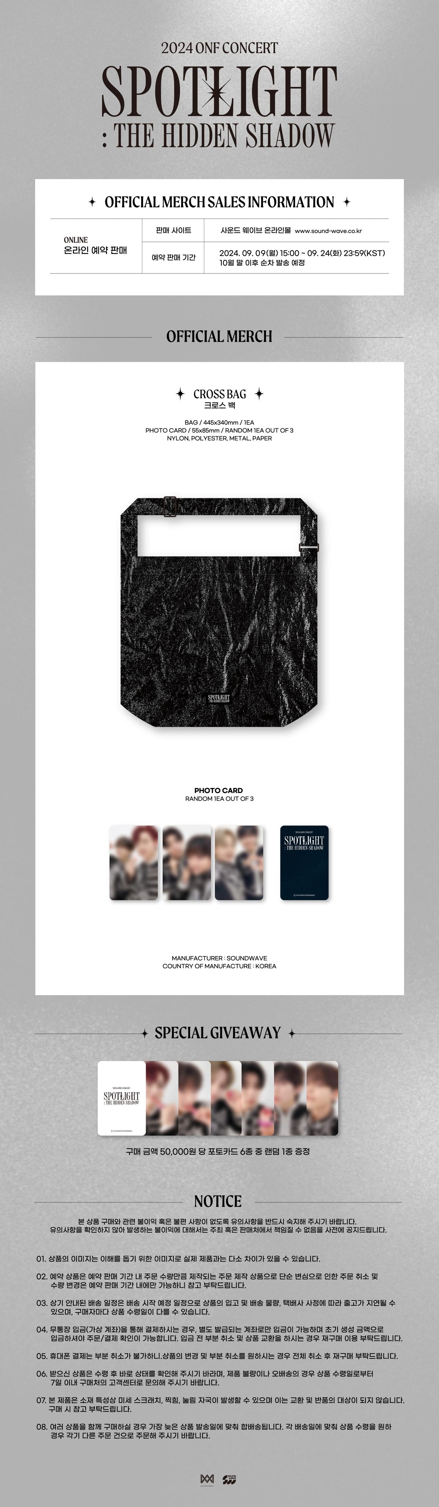 ONF [SPOTLIGHT : THE HIDDEN SHADOW] OFFICIAL MD CROSS BAG