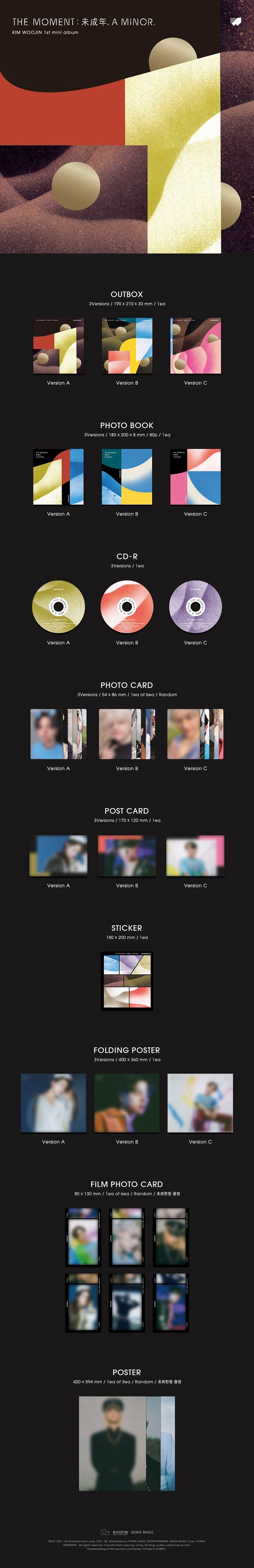 Kim Woo-jin's first mini-album [The moment: 未成年, a minor.] contains various emotions about the moments we are experiencing before going into the world as adults.