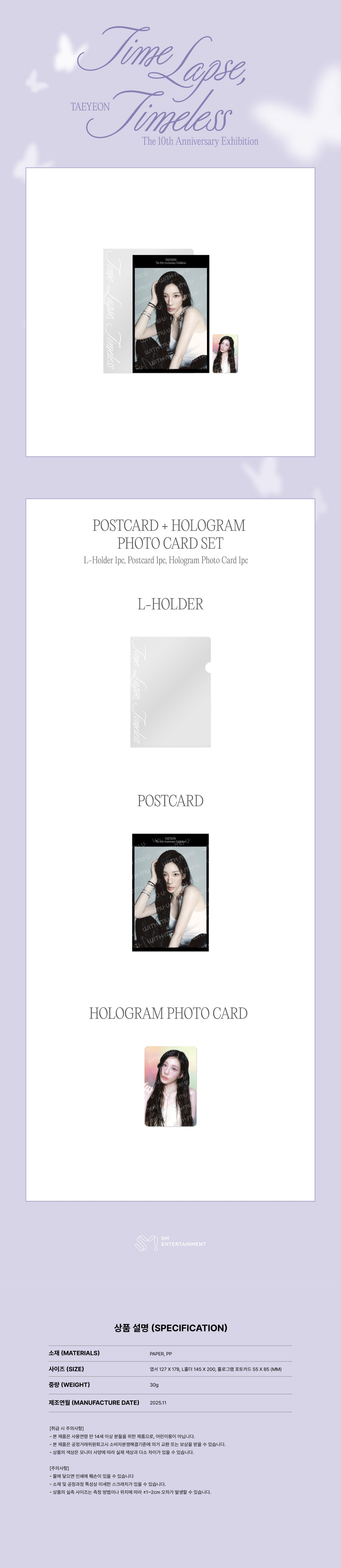 (PRE-ORDER) TAEYEON - [Time Lapse, Timeless] 10th Anniversary Exhibition OFFICIAL MD POSTCARD+HOLOGRAM PHOTO CARD SET