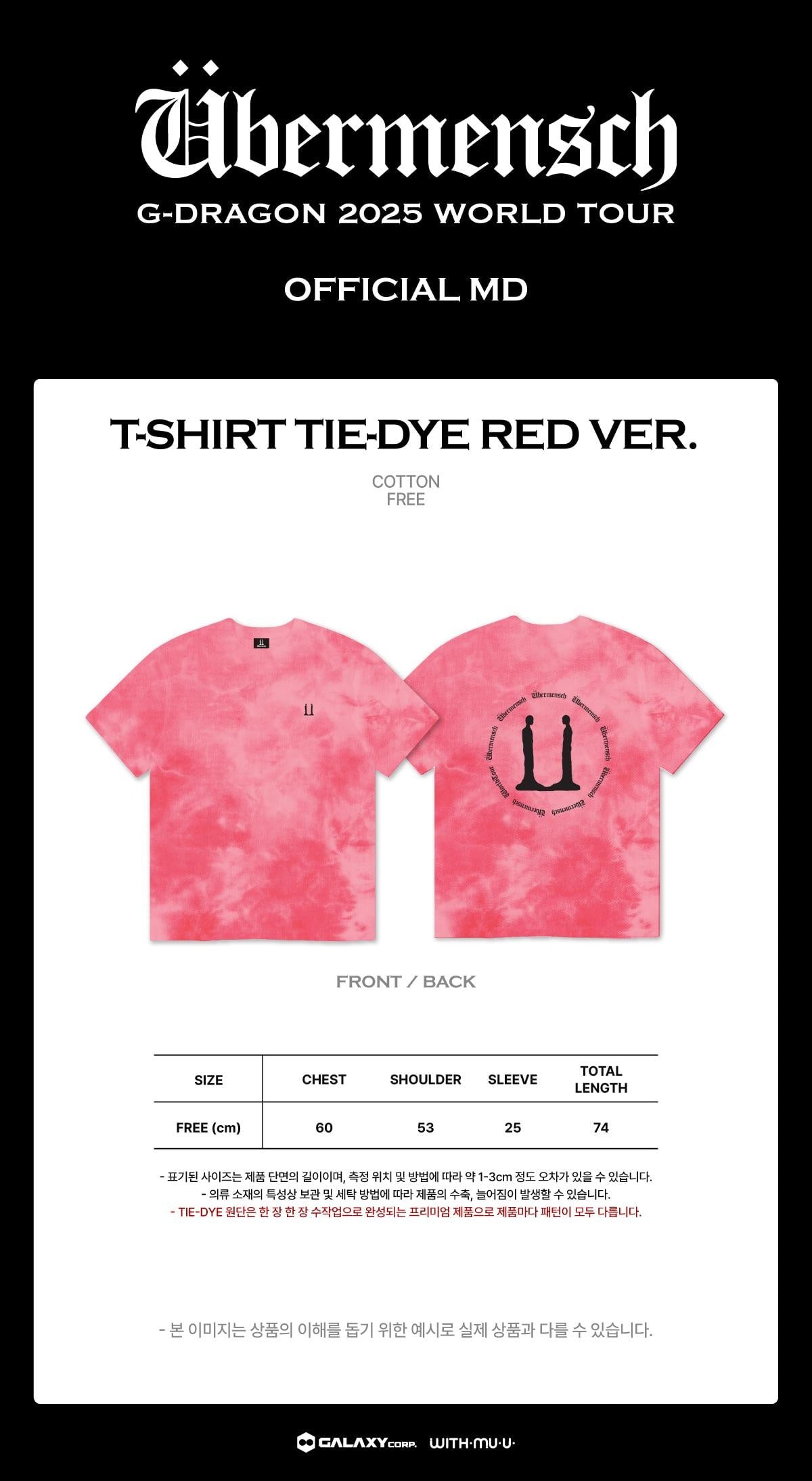 (PRE-ORDER) G-DRAGON - [Übermensch] 2025 WORLD TOUR MD T-SHIRT TIE-DYE RED VER.