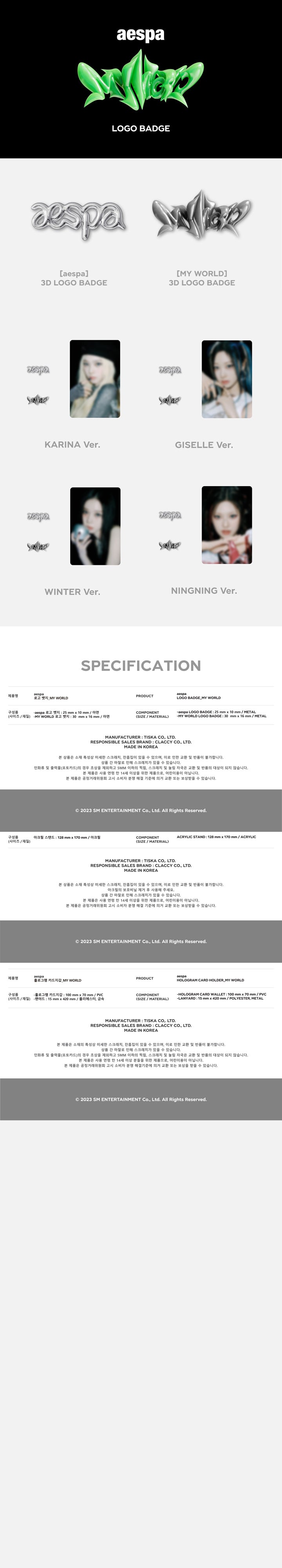 aespa LOGO BADGE : 25mm x 10mmMY WORLD LOGO BADGE : 30mm x 16mm