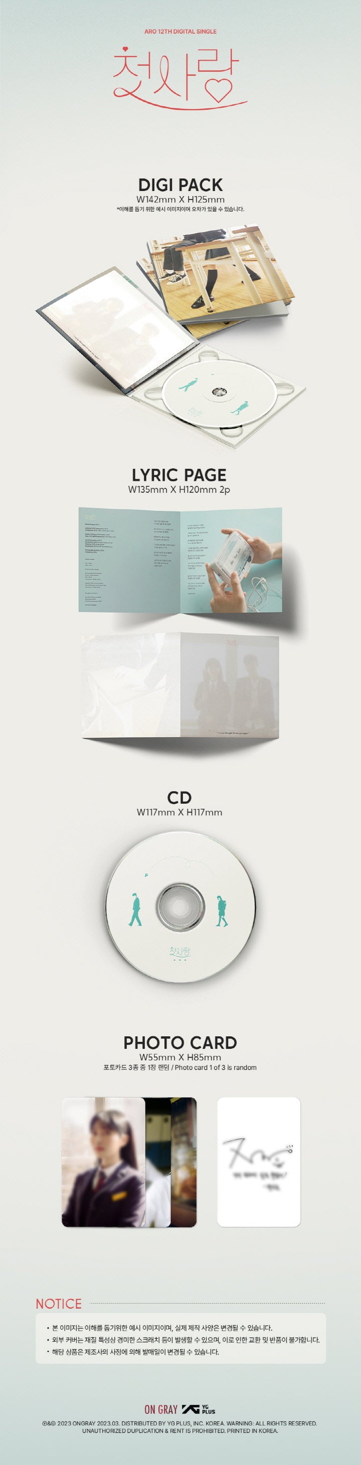 Depending on versions, contents (cover, photo book, mini book, photo cards, posters, etc.) in the official album package may vary.
