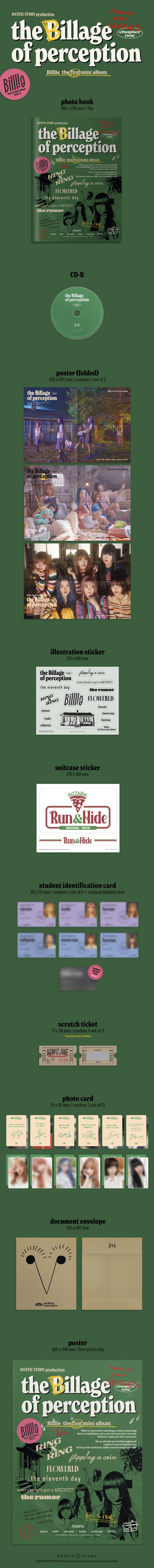 시윤, 츠키, 수현, 하람, 문수아, 하루나로 구성된 빌리의 데뷔 앨범 'the Billage of perception : chapter one'은 탄탄한 스토리를 기반으로 한 유니크한 세계관은 물론 국내외 톱 프로듀서들과 안무 레이블 원밀리언 댄스 스튜디오와의 협업을 통해 음악, 가창, 랩, 퍼포먼스 등 다각적으로 완성도를 높인 앨범이다.