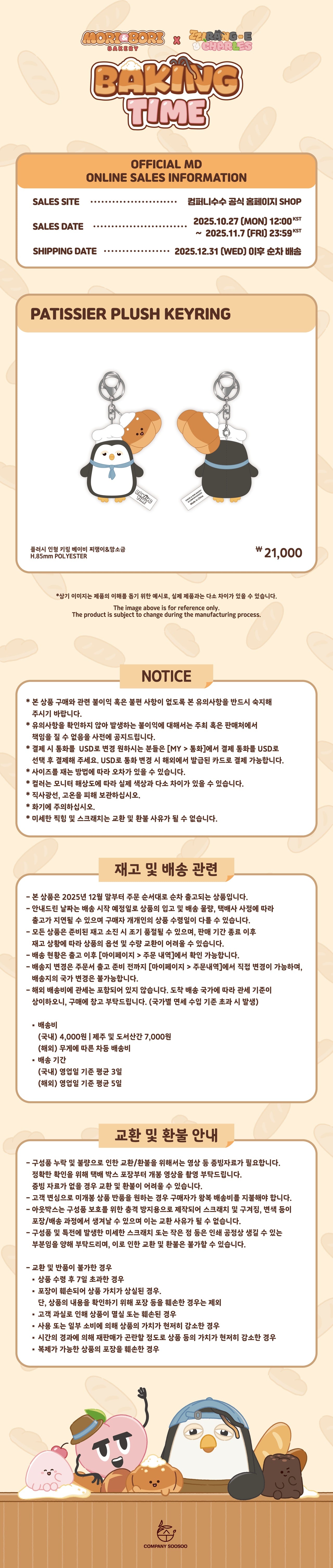 DOH KYUNG SOO - [ZZirang-e & Charles X MoriBori Bakery] BAKING TIME POP-UP STORE MD PATISIER PLUSH KEYRING