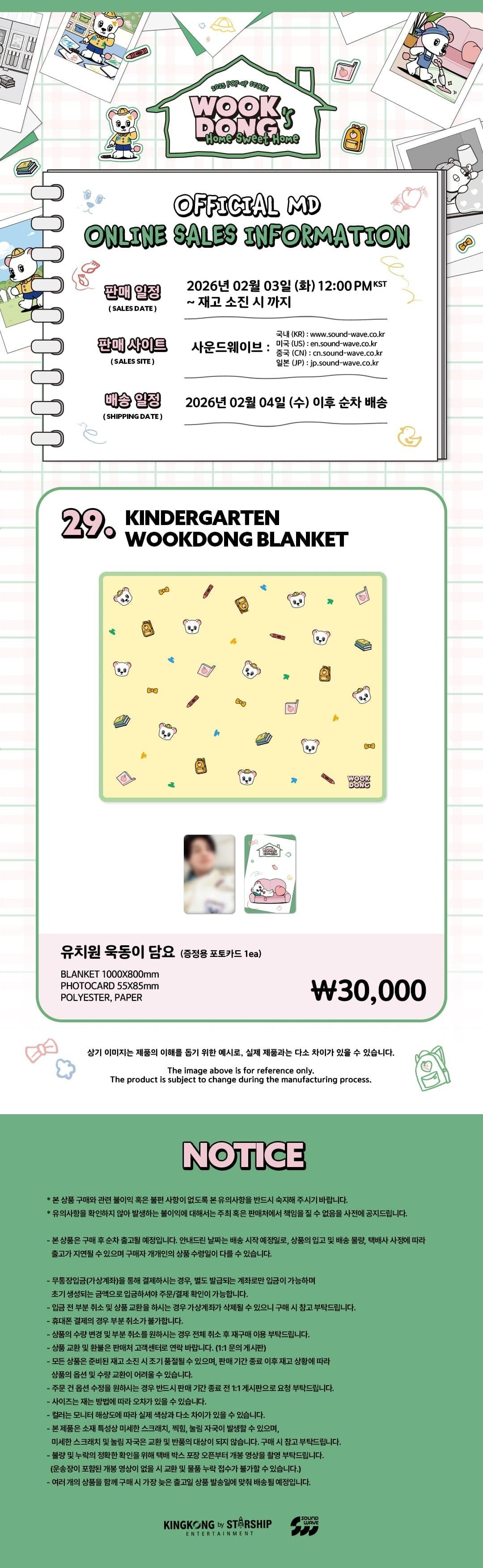 (PRE-ORDER) LEE DONG WOOK - [WOOKDONG'S HOME SWEET HOME] MD KINDERGARTEN WOOKDONG BLANKET