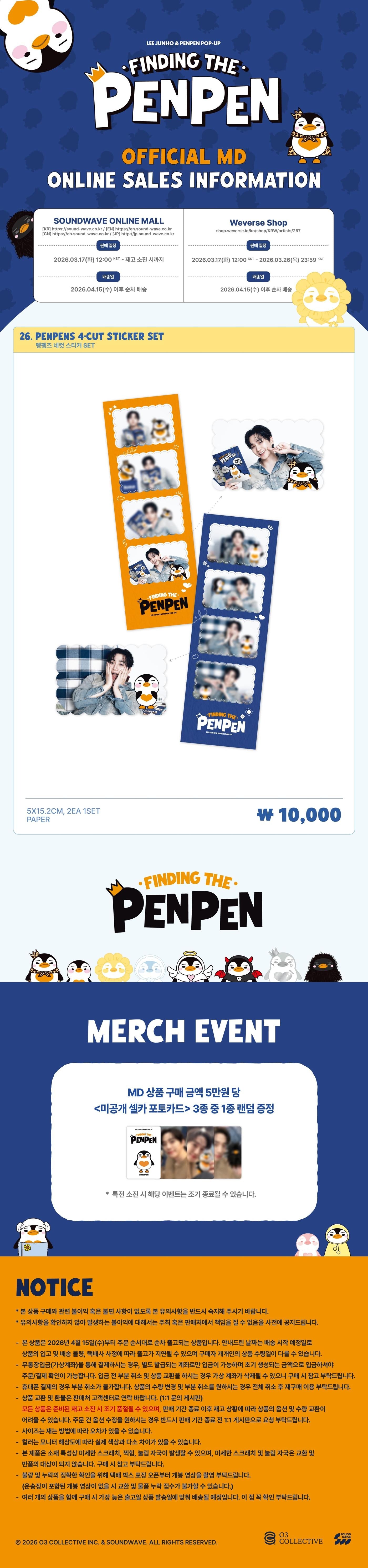 (PRE-ORDER) LEE JUNHO - [FINDING THE PENPEN] POP-UP MD PENPENS 4-CUT STICKER SET