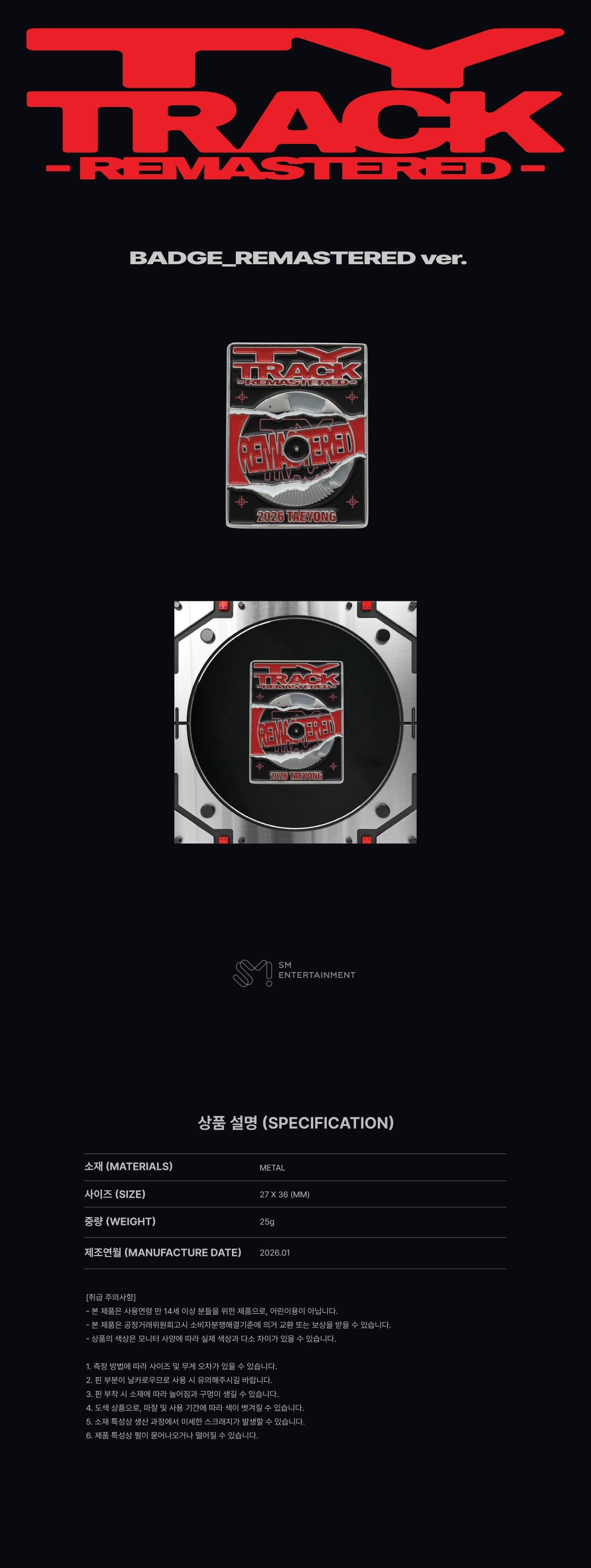 TAEYONG - [TY TRACK - REMASTERED] 2026 CONCERT MD BADGE (REMASTERED ver.)