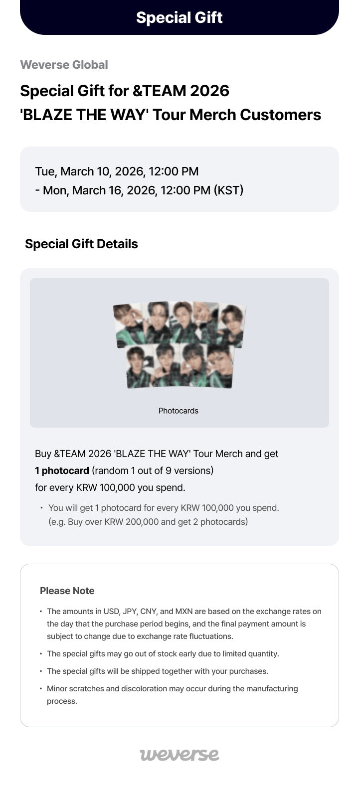 - All purchase quantities will count towards HANTEO, CIRCLE (GAON) and BILLBOARD Charts.