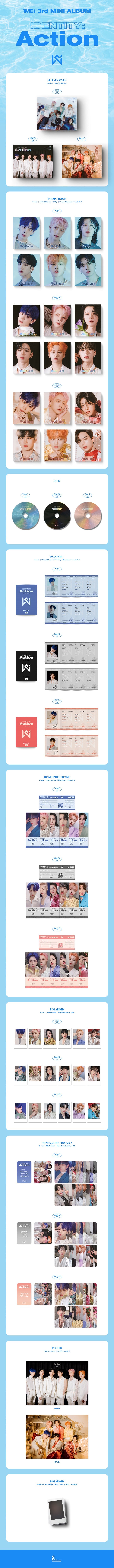 'Action', the last series to publicize the identity of WEi as music, follows the 2nd mini-album that showed the process of overcoming trials and becoming one through challenges, as well as the music that WEi wants to show in the future. It will be an album that shows how WEi's music will flow.